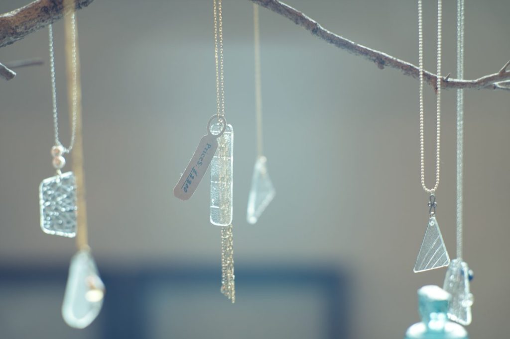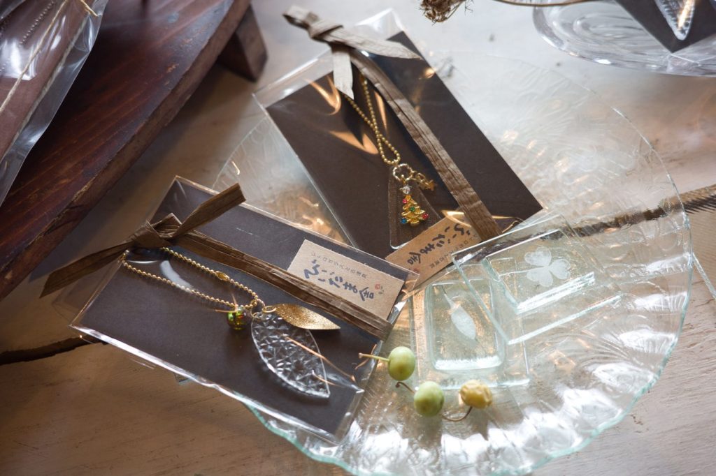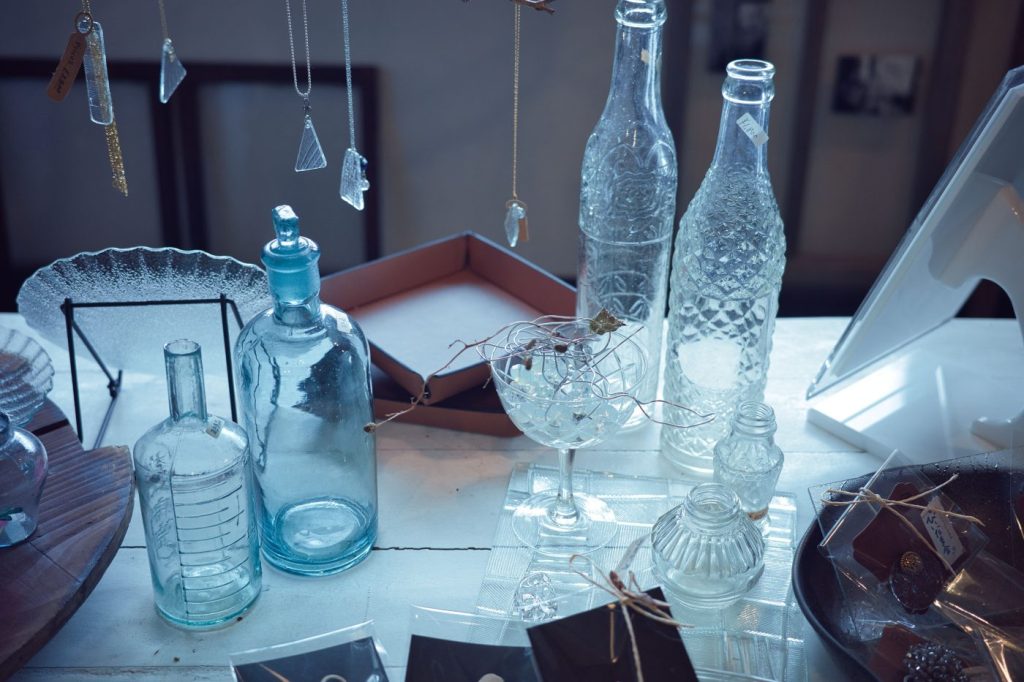 元々、ワークショップから始まったという店内には、さまざまな模様のレトロガラスを加工した商品がズラリ。