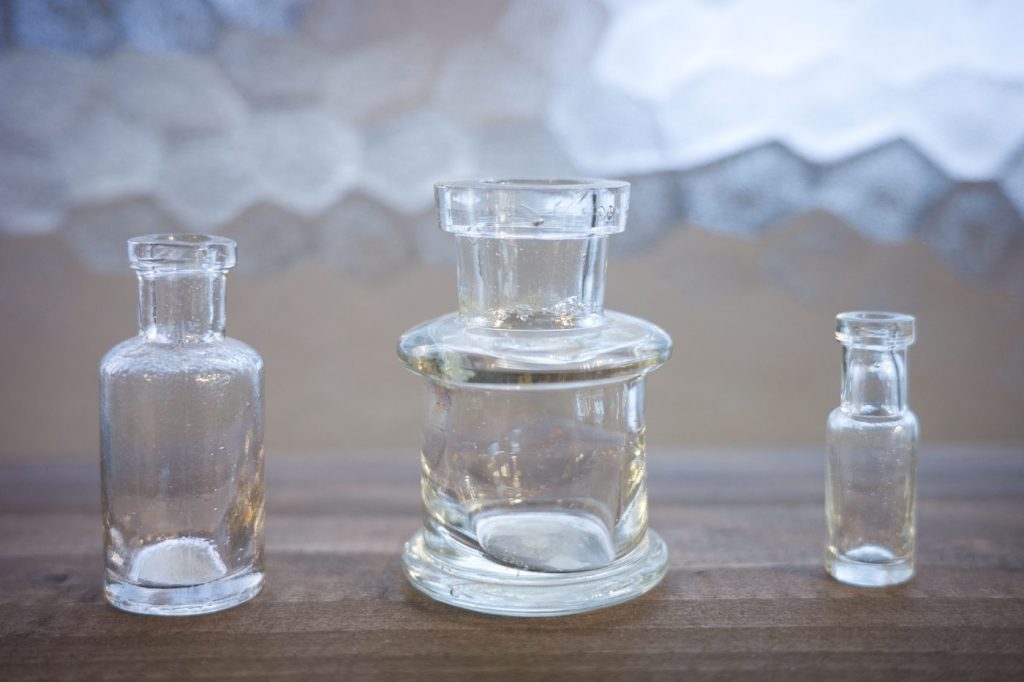 お菓子の瓶や薬瓶など、手のひらサイズで可愛い物が豊富。