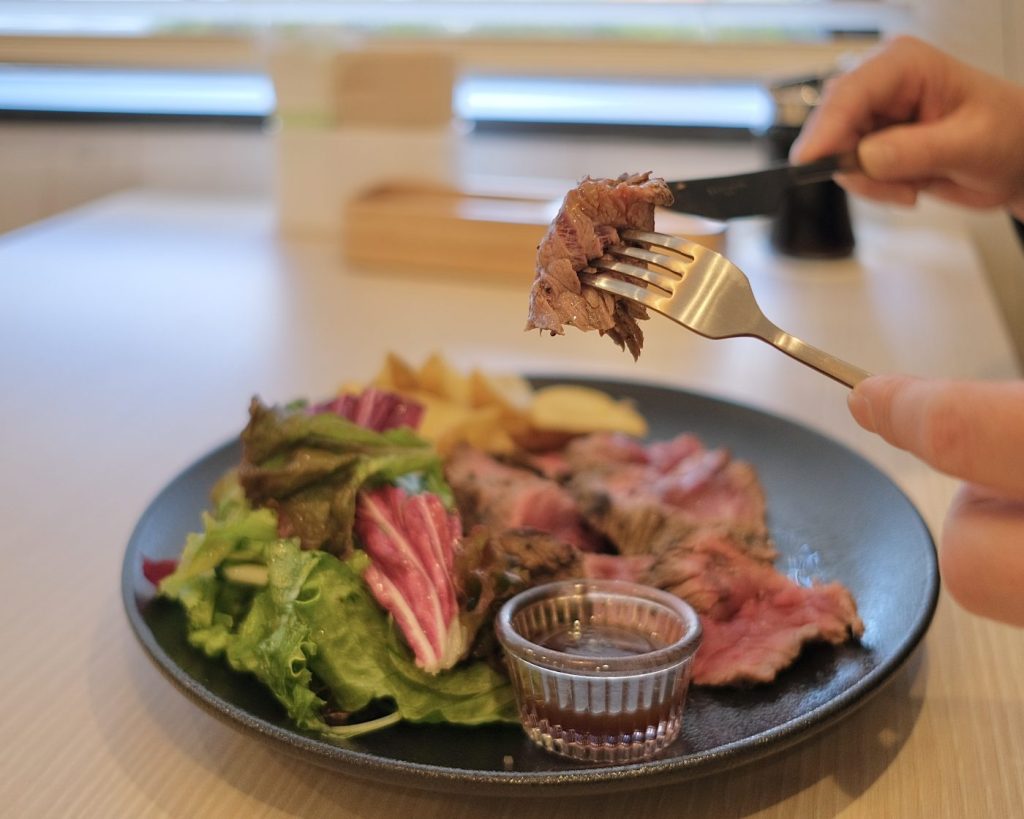 ほんのりピンク色に焼き上げられたお肉が、見るだけで食欲をそそります。