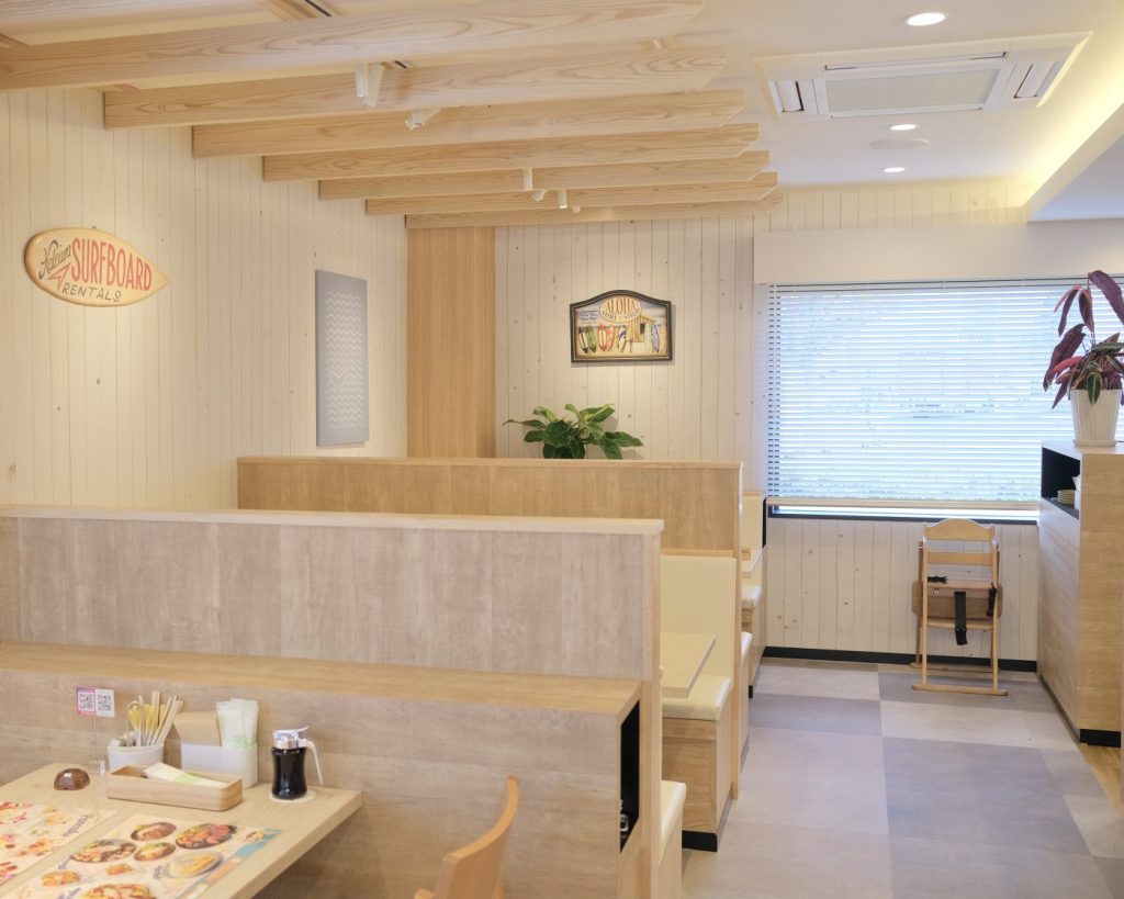 ハワイをイメージした開放的で明るい店内には、海を連想させるインテリアが随所に飾られています。壁やテーブルのデザインひとつひとつにもこだわりが感じられ、訪れる人に非日常の空間を演出してくれます。
