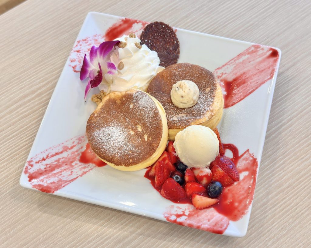 見た目も華やかでフォトジェニック。まさに、名前にふさわしいパンケーキです。